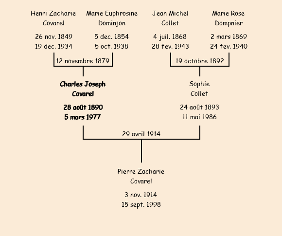 Epouse : Sophie Collet (née à Fontcouverte le 24 août1893), fille de Jean Michel (du Chef Lieu) et de Marie Rose Dompnier (du Chef Lieu) |