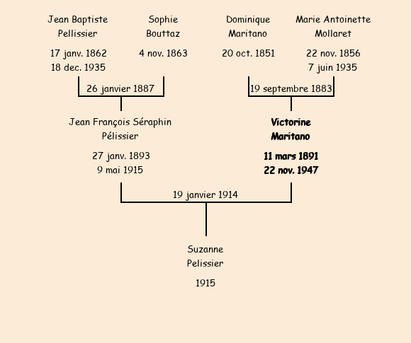 Victorine Maritano apparait dans le dénombrement de la population de 1891. |