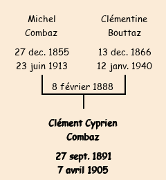 Père : Michel Combaz, fils de Pierre François (cultivateur, 35 ans) | Parrain : Cyprien Bouttaz |