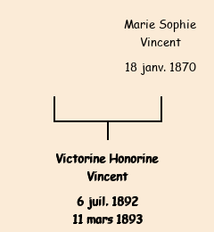 Mère : Marie Sophie Vincent, fille de Jean Michel (cultivatrice, 22 ans, fille de Marie Caroline Poingt décédée) | Marraine : Victorine Vincent |