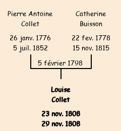 Père : Pierre Antoine Collet | Parrain : Alexandre Buisson |