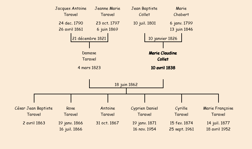 Marie Claudine Collet apparait dans le dénombrement de la population de 1881.
