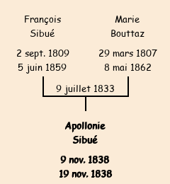 Mère : Marie Bouttaz (ménagère) | Marraine : Apollonie Bouttaz (ménagère) |