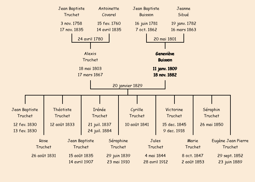 Epoux : Alexis Truchet, fils de Jean Baptiste et de Antoinette Covarel |