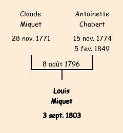 | Père : Claude Miquet, fils de Louis | Parrain : Louis Chabert (fils du dit Michel) |
