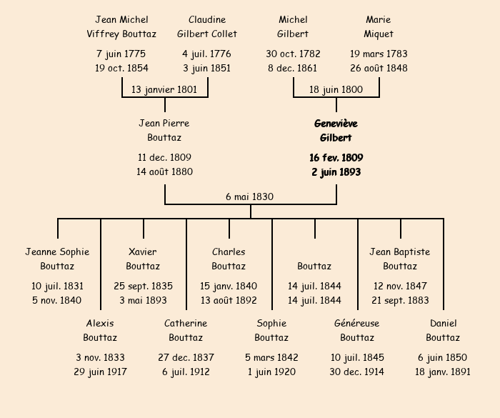 Epoux : Jean Pierre Bouttaz, fils de Jean Michel et de Jeanne Gilbert Collet |