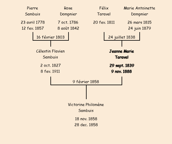 Epouse : Jeanne Marie Taravel (19 ans, a marqué), fille de Félix (a signé) et de Marie Antoinette Dompnier |