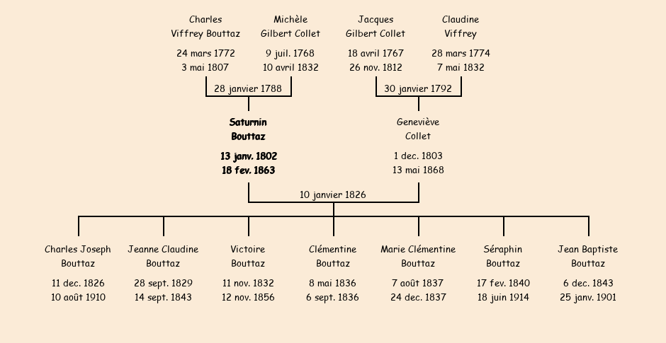 Père : Charles Bouttaz, fils de Saturnin | Parrain : Claude Dompnier (fils de Louis) |