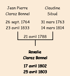 Père : Jean Pierre Claraz Bonnel, fils de Michel | Parrain : Jean Vincent (fils de Saturnin) |