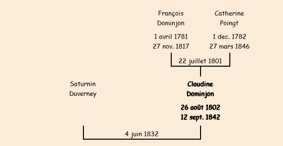 Epouse : Claudine Dominjon, fille de feu François et de Catherine Poingt |