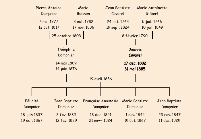 Epoux : Théophile Dompnier, fils de feu Pierre Antoine et de Marie Buisson |