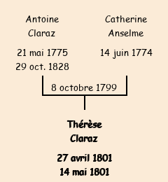 Père : Antoine Claraz, fils de Michel | Parrain : Saturnin Vincent (fils de Michel) |