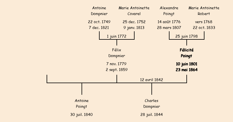 Epouse : Félicité Poingt (42 ans, a marqué), fille de feu Joseph et de feue Marie Antoinette Robert |