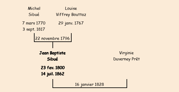 Marié (27 ans) avec Virginie Duverney Prêt le 16 janvier 1828 à Saint-Jean-de-Maurienne |