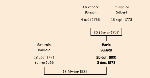 Mariée (27 ans) avec Saturnin Balmain (36 ans) le 12 février 1828 à Saint-Jean-de-Maurienne |