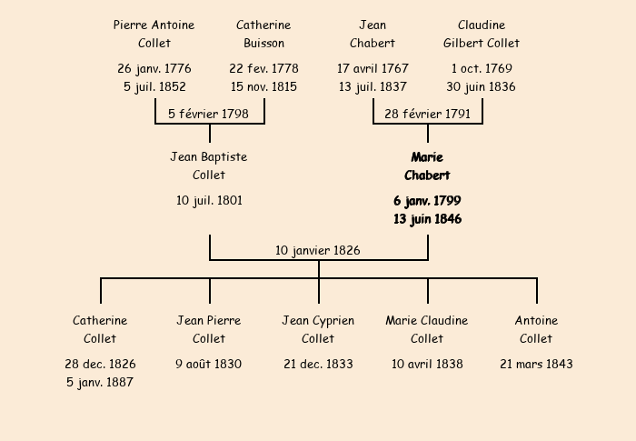 Epoux : Jean Baptiste Collet, fils de Pierre Antoine et de feue Catherine Buisson |
