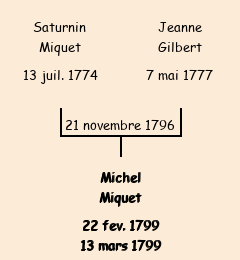 Père : Saturnin Miquet, fils de Claude | Parrain : Michel Gilbert (fils du dit Félix) |