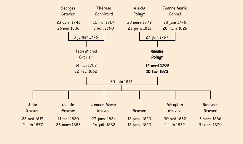 Epouse : Rosalie Poingt, fille de feu Alexis et de Jeanne Marie Bonnel |