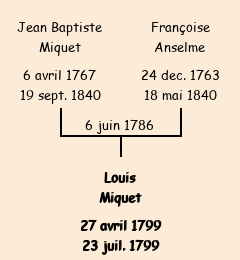 Père : Jean Baptiste Miquet, fils de Claude | Parrain : Claude Miquet (fils de Louis) |