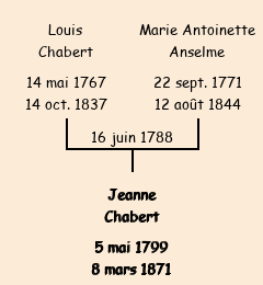 | Mère : Marie Antoinette Anselme, fille de Jean | Marraine : Jeanne Covarel (épouse de Jean Baptiste Chabert) |