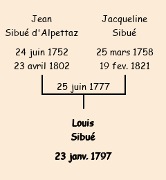 Père : Jean Sibué, fils de Jean Baptiste | Parrain : Louis Miquet (fils de Claude) |