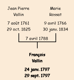 Père : Jean Pierre Vallin, fils de François | Parrain : François Dominjon (fils de Noémi) |