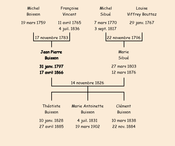 Père : Michel Buisson, fils de Jean Baptiste | Parrain : Jean Pierre Buisson (fils de Jean Baptiste l'ainé) |