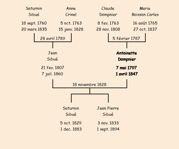 Epoux : Jean Sibué, fils de Saturnin et de feue Anne Crinel |