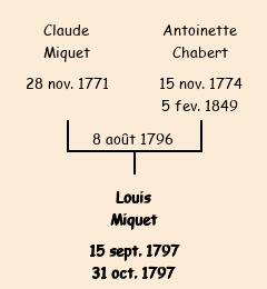 Père : Claude Miquet, fils de Louis | Parrain : Louis Carles (fils de Jean Baptiste) |