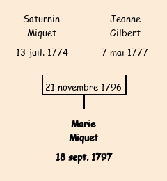 Père : Saturnin Miquet, fils de Claude | Parrain : Louis Miquet (fils du dit Claude, frère de la marraine) |