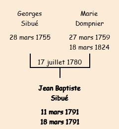Père : Georges Sibué, fils de Noémi | Parrain : Jean Baptiste Taravel |
