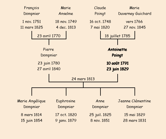 Epouse : Marie Antoinette Poingt, fille de Claude et de Marie Duverney Guichard |