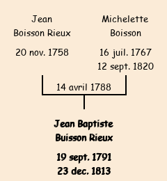 Père : Jean Buisson Rieux, fils de Saturnin | Parrain : Jean Baptiste Buisson |