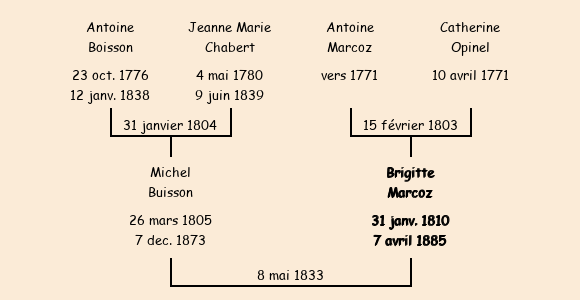 Mariée (23 ans) avec Michel Buisson (28 ans) le 8 mai 1833 à Saint-Jean-de-Maurienne |
