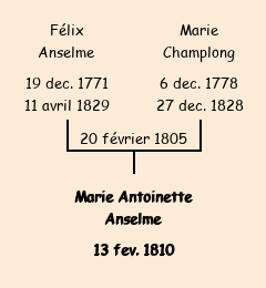 Père : Félix Anselme, fils de Gaspard | Parrain : Georges Gravier (fils de Noémi décédé) |