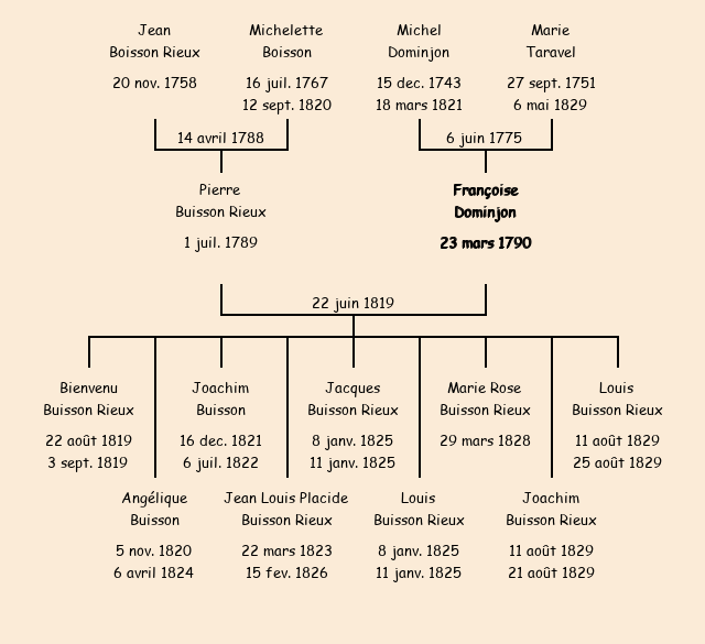 Epoux : Pierre Buisson Rieux (veuf de Marie Antoinette Collet), fils de feu Jean et de Michèle Buisson |