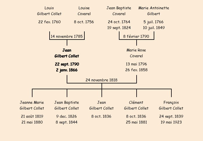 Epoux : Jean Gilbert Collet, fils de Louis et de Louise Covarel |