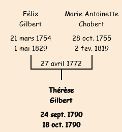 Mère : Marie Antoinette Chabert | Marraine : Catherine Gilbert (fille du dit Félix) |