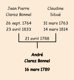 André Claraz Bonnel apparait dans la consigne du sel pour l'année 1790. |