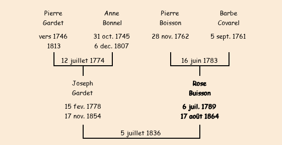 Epoux : Joseph Gardet (veuf de Françoise Aymard), fils de feu Pierre |