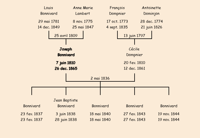 Epoux : Joseph Bonnivard, fils de Louis et de Anne-Marie Lambert |