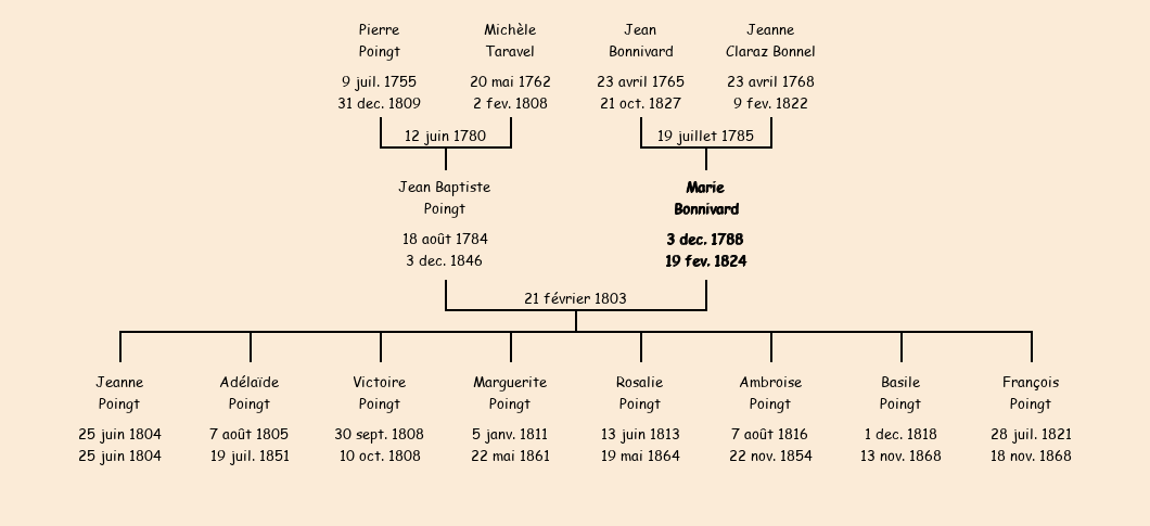 Epoux : Jean Baptiste Poingt, fils de Pierre et de Michèle Taravel |