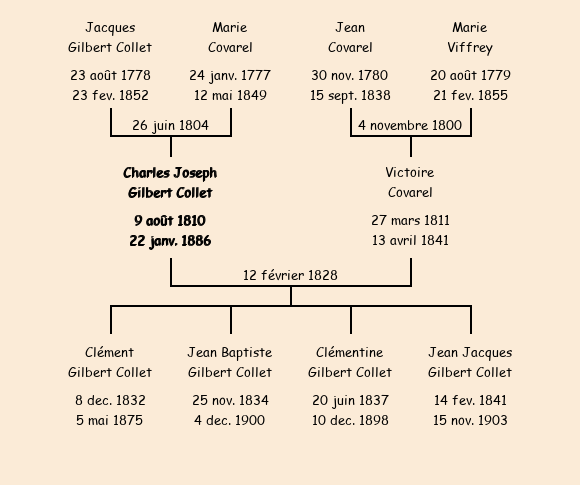 Epoux : Charles Joseph Gilbert Collet, fils de Jacques et de Marie Covarel |