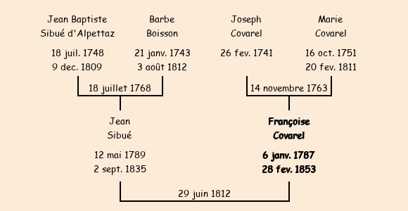 Epoux : Jean Sibué, fils de feu Jean Baptiste et de Barbe Buisson |