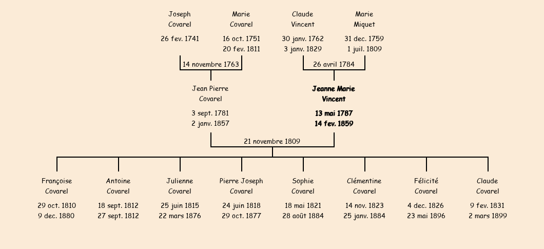 Epouse : Jeanne Marie Vincent, fille de Claude et de feue Marie Miquet |