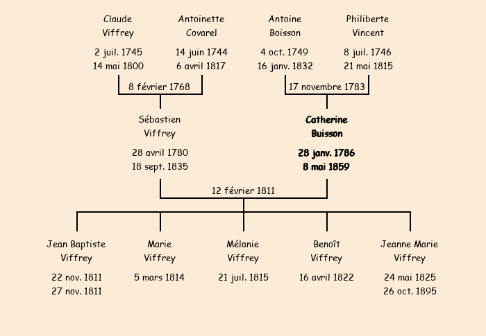 Epoux : Sébastien Viffrey, fils de feu Claude et de Antoinette Covarel |