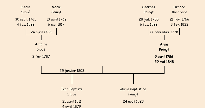 | Epoux : Antoine Sibué, fils de Pierre et de Marie Poingt |