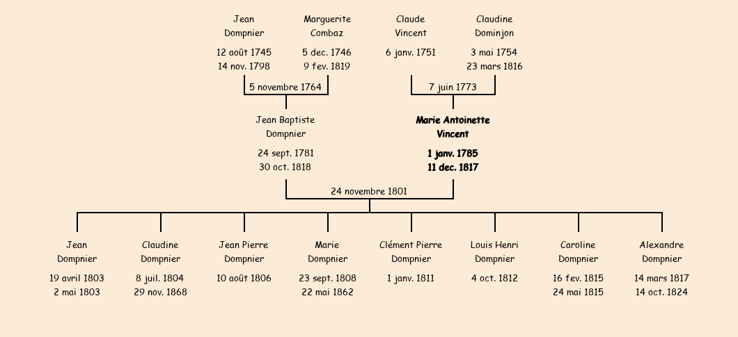 Epouse : Marie Antoinette Vincent, fille de Claude et de Claudine Dominjon |