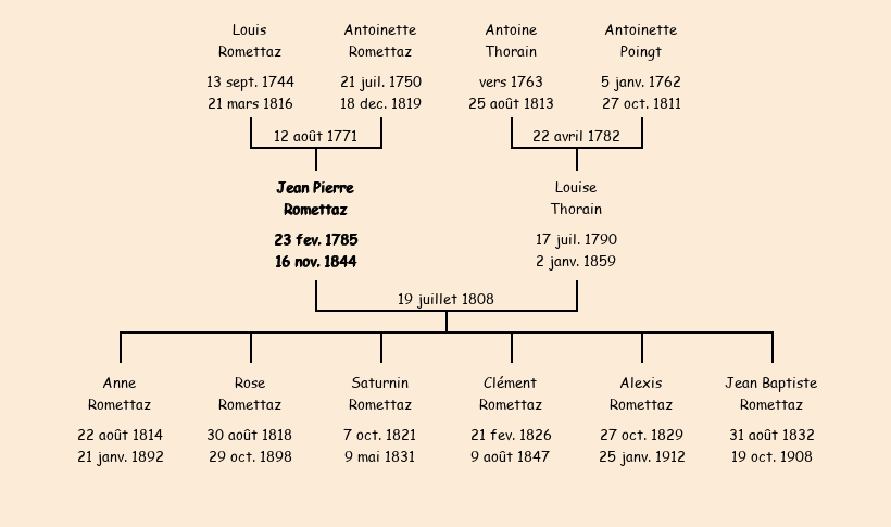 Epoux : Jean Pierre Romettaz, fils de Louis et de Antoinette Romettaz |
