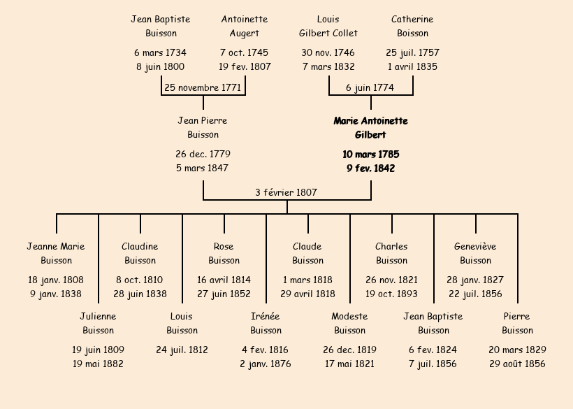 Epouse : Marie Antoinette Gilbert, fille de Louis et de Catherine Buisson |